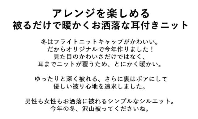さらに裏地はボアになっているため、被ったときにふんわりと優しい被り心地。