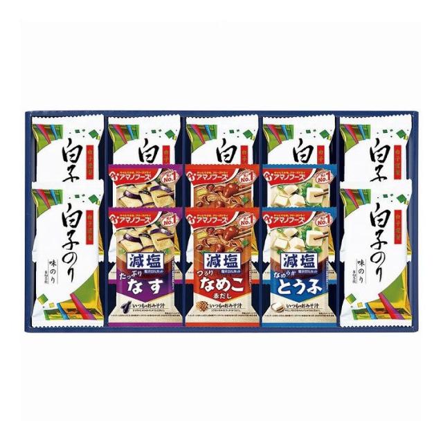 アマノフーズの減塩タイプみそ汁と白子のり味のりを詰合せました。
