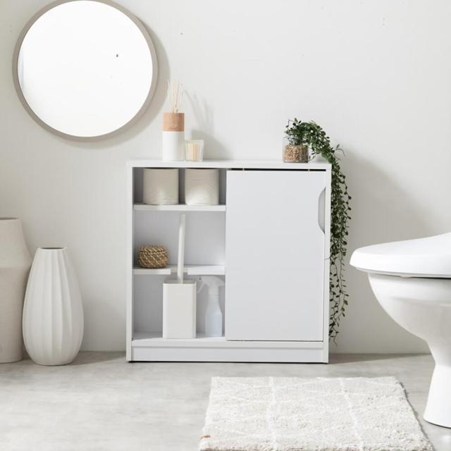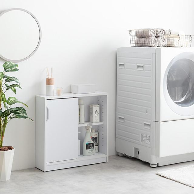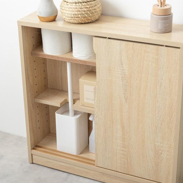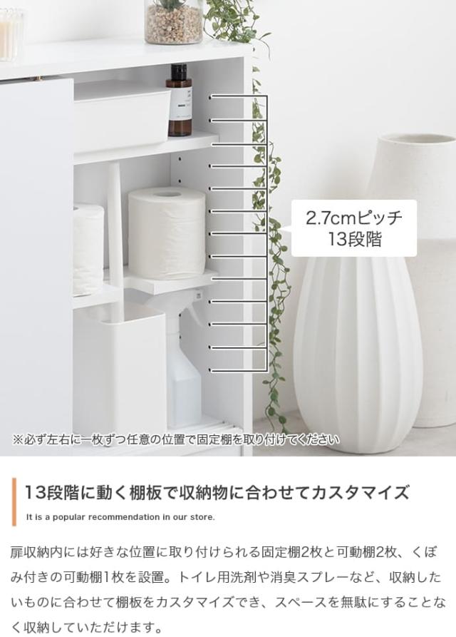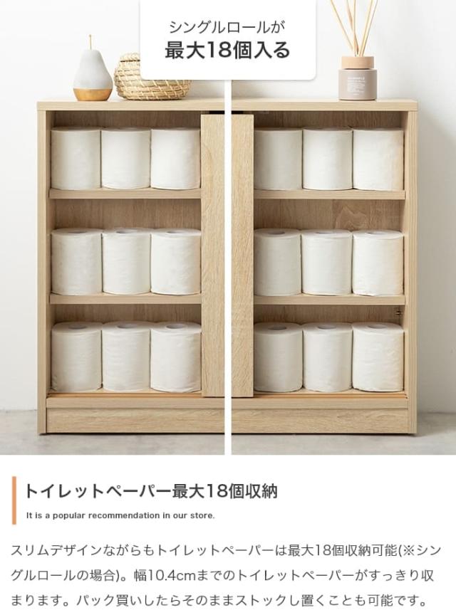 3段階の可動棚やノイズレスデザインで、トイレットペーパーや洗剤を整理整頓し、生活感を隠す収納を実現いたします。