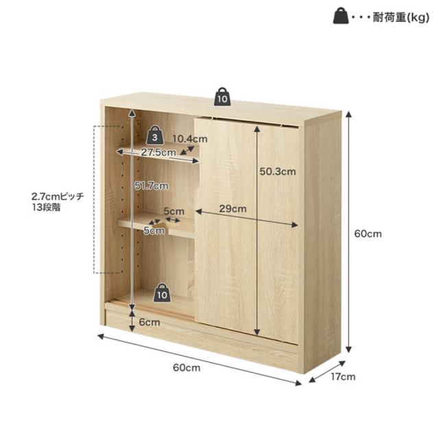 耐荷重: 天板 約10kg 、可動棚 約3kg、収納内底板 約10kg