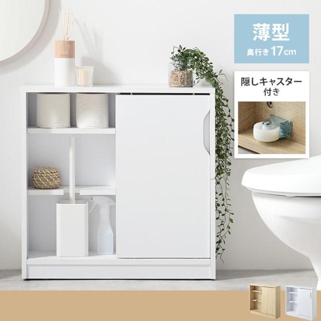 キャスター付きトイレラック トイレラック 収納棚 トイレ収納 コンパクト スリム 薄型 引き戸 隠しキャスター付き ワゴン 隙間