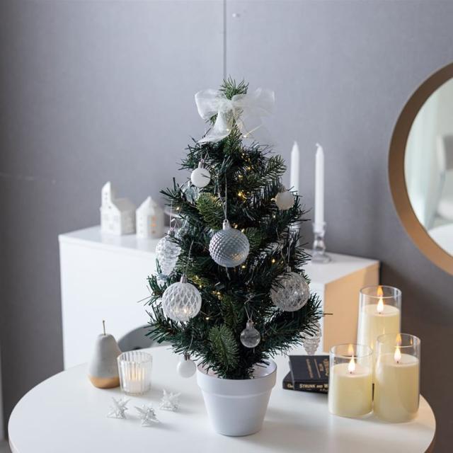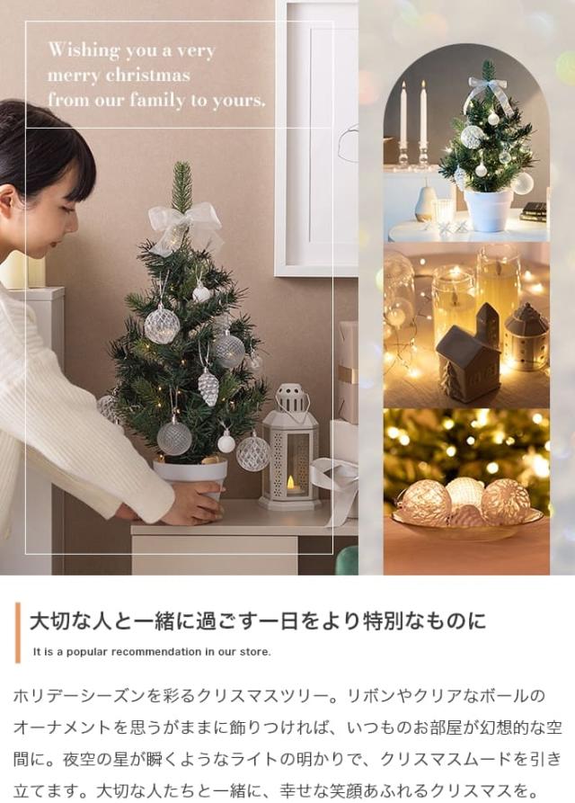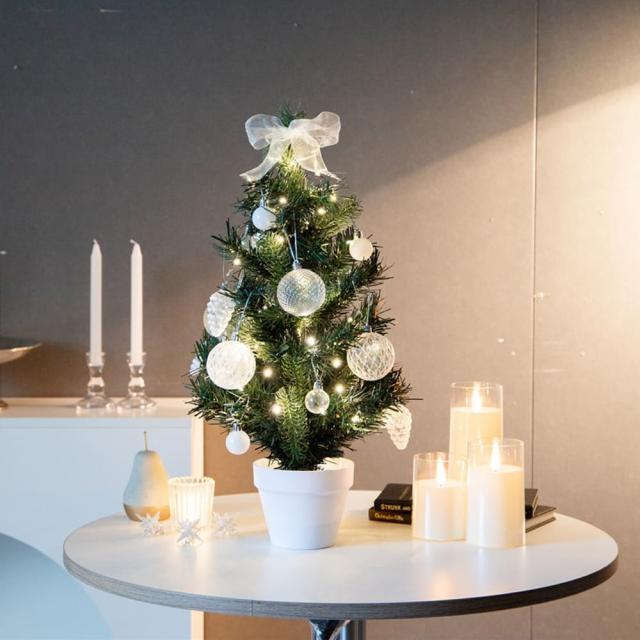 コンパクトでも華やかさ抜群!クリアオーナメントとLEDライトで、お部屋が一瞬でクリスマスムードに。きらめくツリーで特別な夜を演出しましょう。