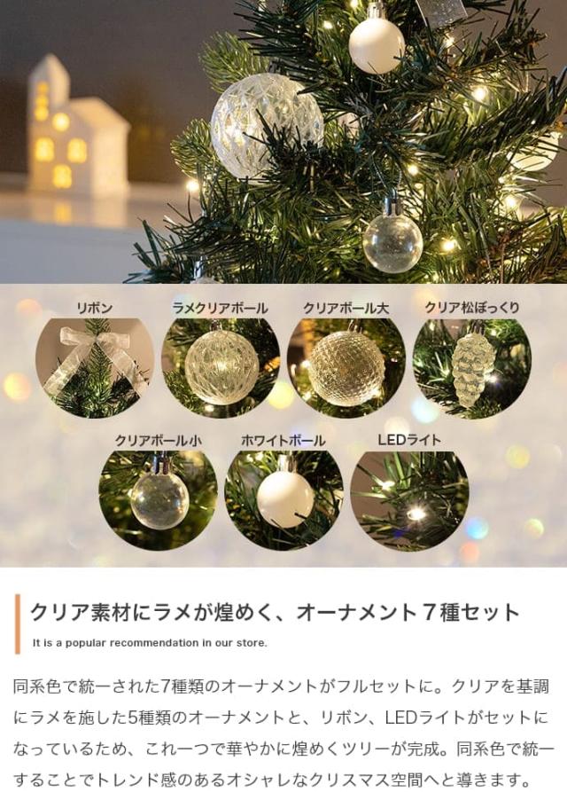 シンプルで飾りやすいクリアオーナメント付きクリスマスツリーで、手軽におしゃれなクリスマス空間を楽しめます。