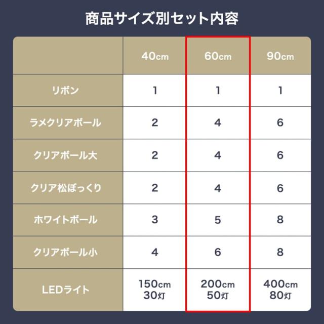 こちらの商品は「クリスマスツリー+オーナメント7種セット 高さ60cmタイプ」となります。