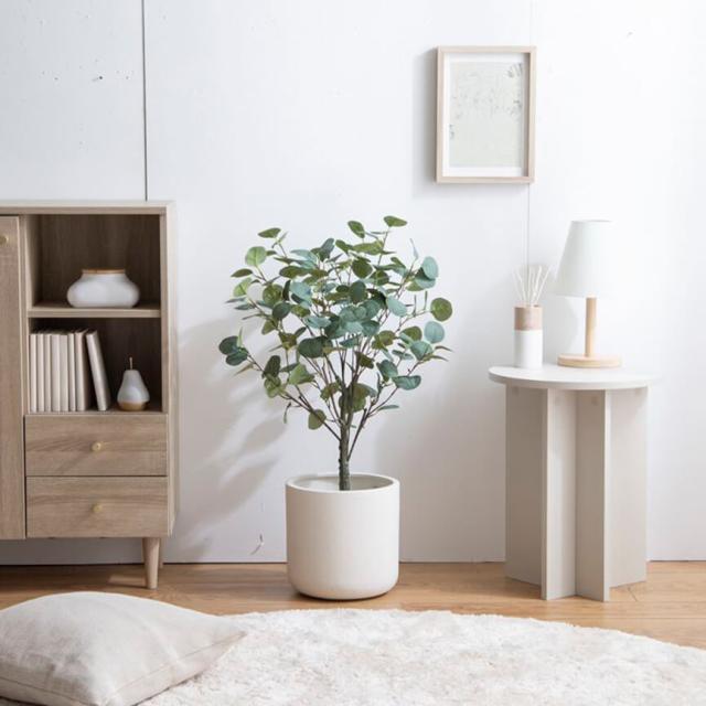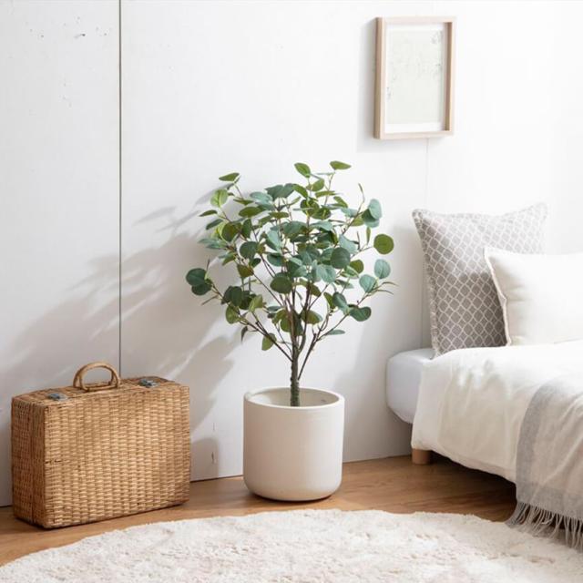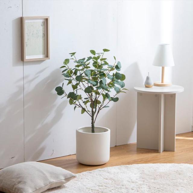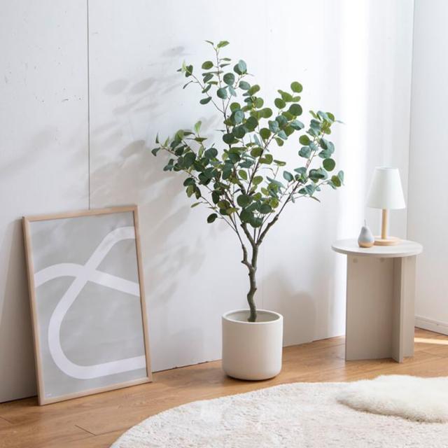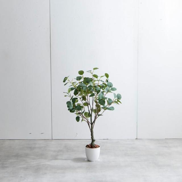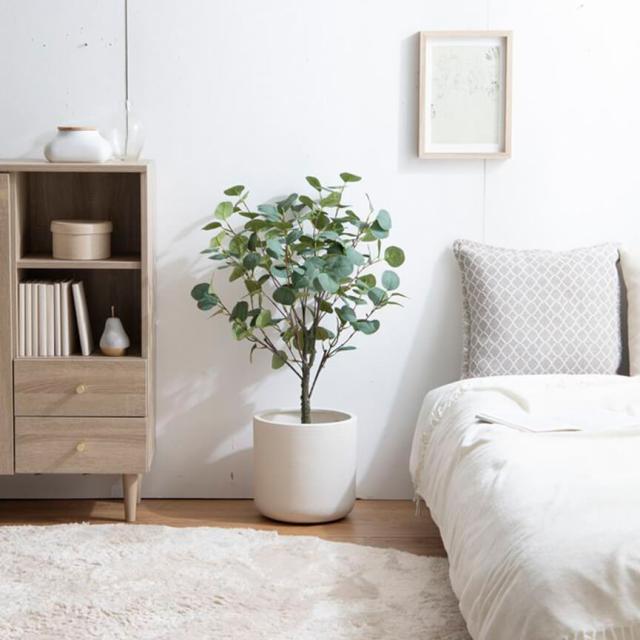 銀色がかった美しいシルバーリーフが特徴のユーカリ。優しい色味と丸みを帯びた葉は、お部屋に馴染みやすく、柔らかさを与えます。北欧テイストなど優しい色合いのお部屋との相性も抜群です。