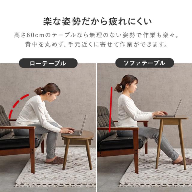 この折りたたみソファテーブルは、ソファに座ったままで快適に作業ができる高さ60cmで設計されています。