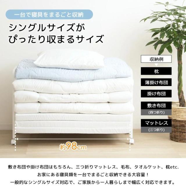 布団収納ラック 奥行浅型1段タイプ キャスター付き 押入れ 布団収納 クローゼット キャスター付きラック 来客用 布団 収納