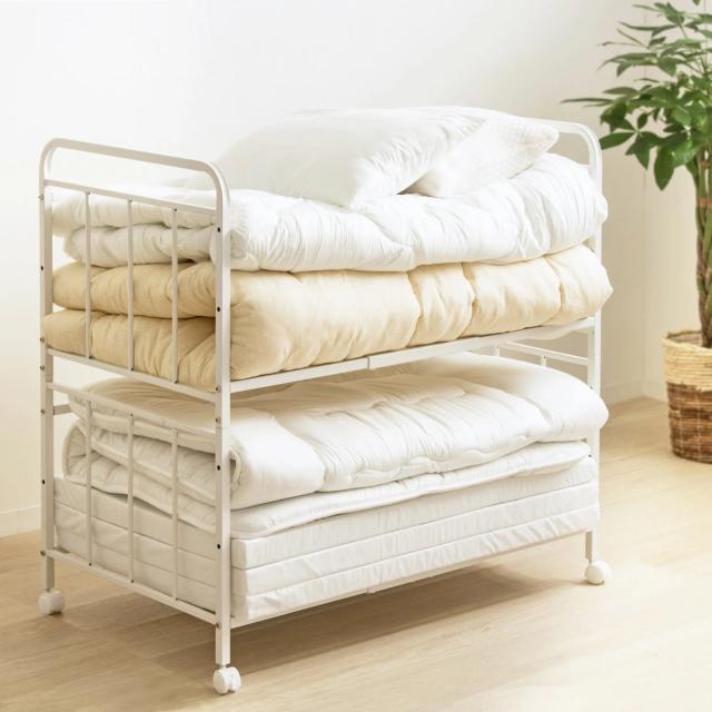 ラック 2段 収納ワゴン アイデア 布団収納棚 ふとん