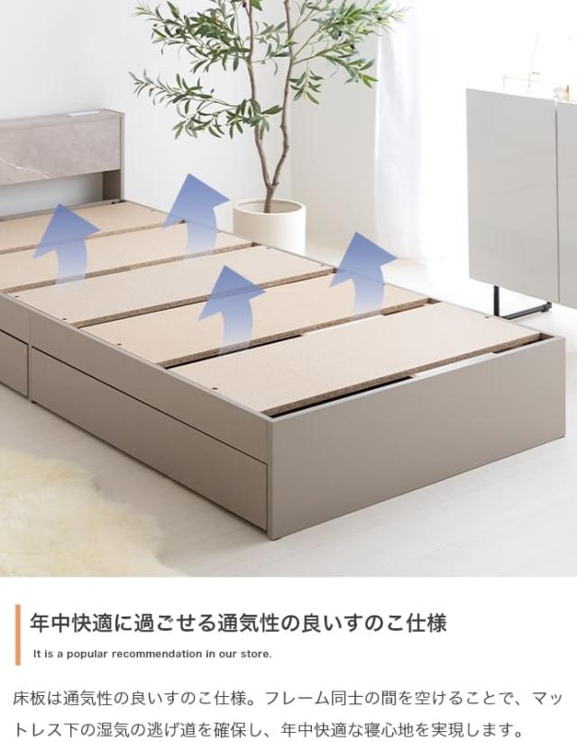 通気性の良いすのこ仕様を採用しているため、年中快適な眠りを提供します。