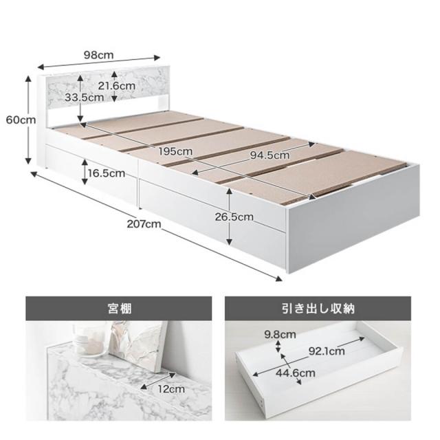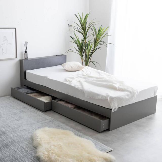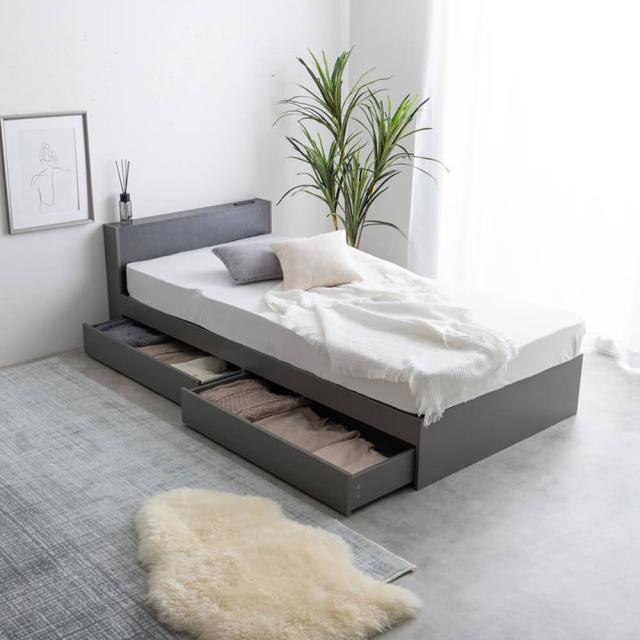コンセント付引き出し収納ベッド シングル ベッド シングル 宮棚付き 収納付き すのこ ロー ポケットコイル 引き出し2杯