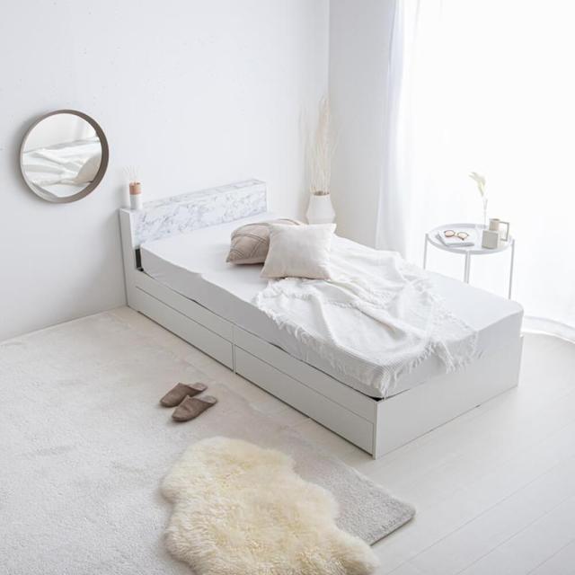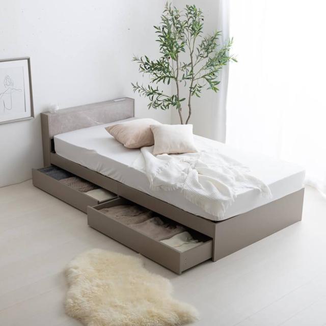 機能性とデザイン性を兼ね備えたストーン柄の収納付きベッドでお部屋をおしゃれに。