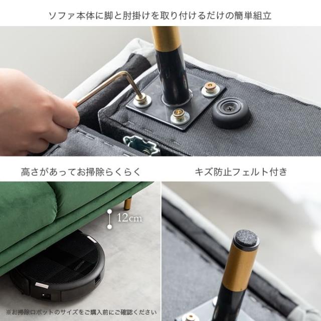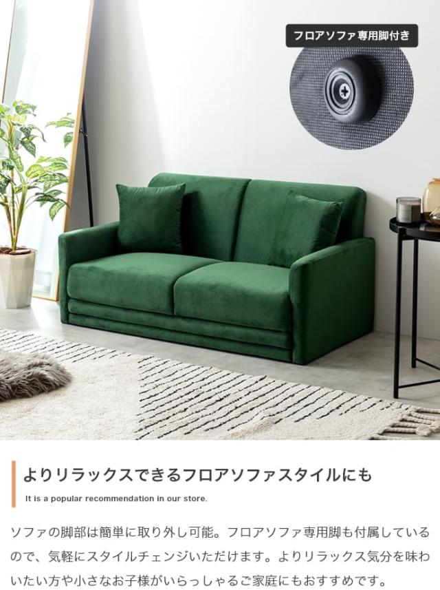 2人掛けコンパクトベロアソファ 2人掛けソファ コンパクトソファー ベロア フロア ロー 二人用 2P 小さい 小さめ