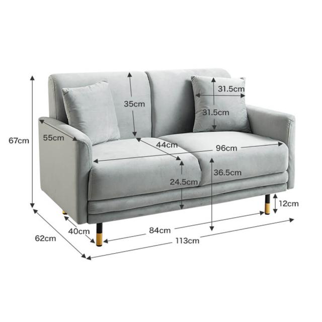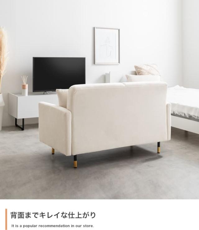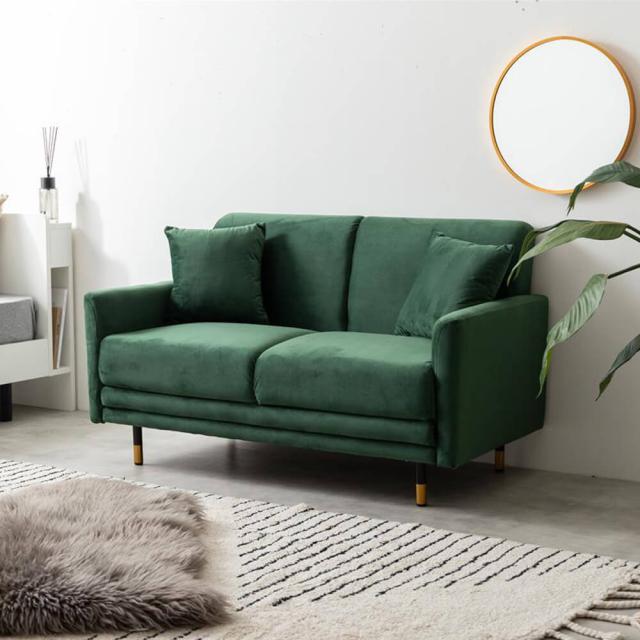 高級感のあるベロア生地とモダンなデザインで、上質な空間を作る2人掛けコンパクトソファ。