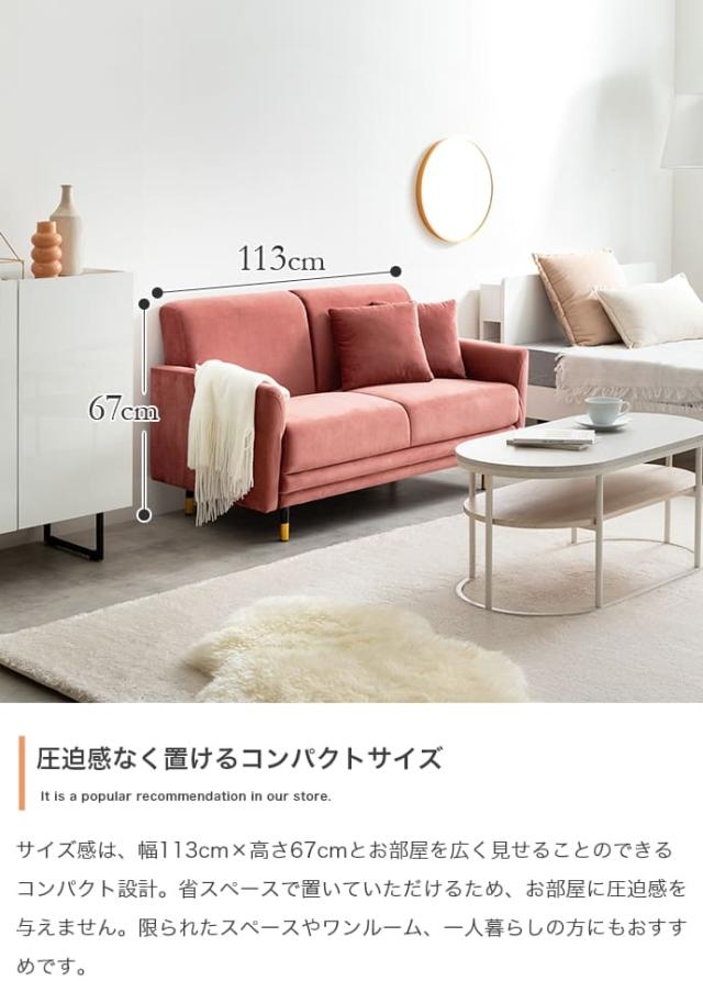 113cmのコンパクトなサイズは、一人暮らしやワンルーム、狭いスペースにも最適で、リラックスした時間を演出します。