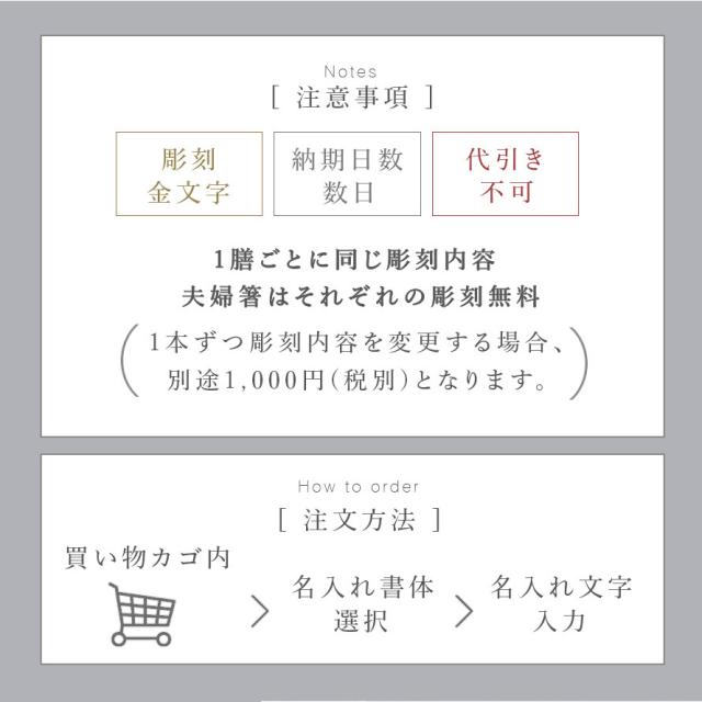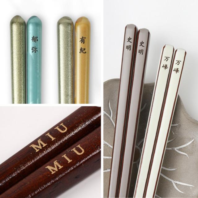 ご希望の方には、彫刻代金無料でお箸に金文字で名前を彫刻することができます。