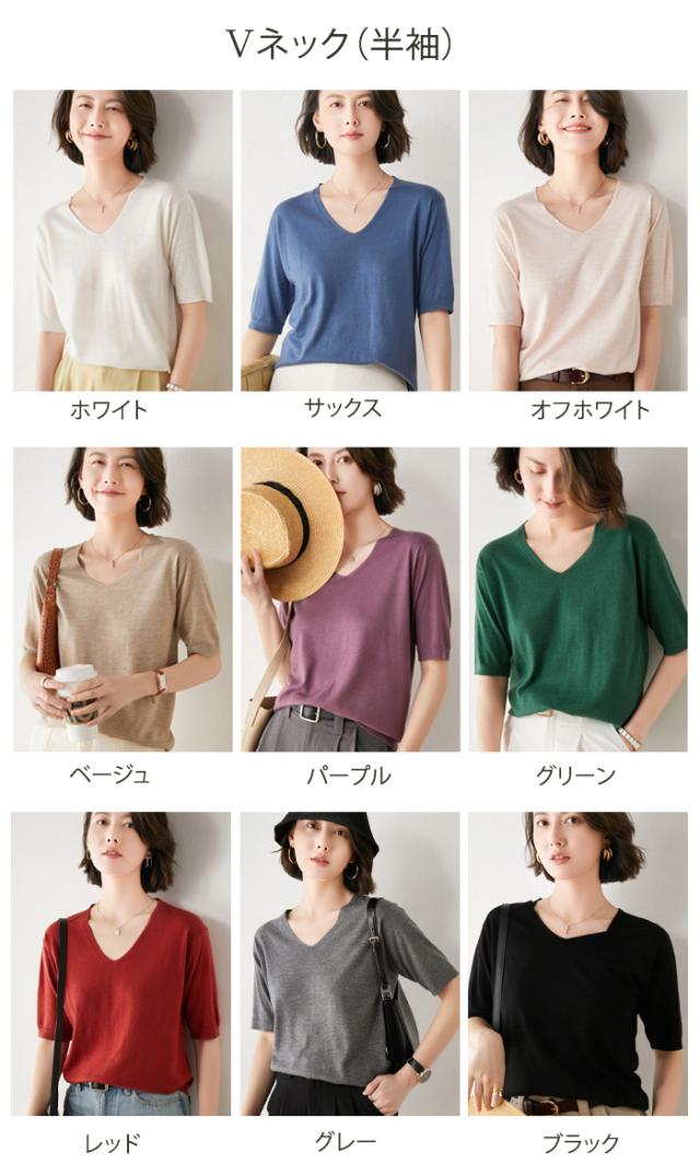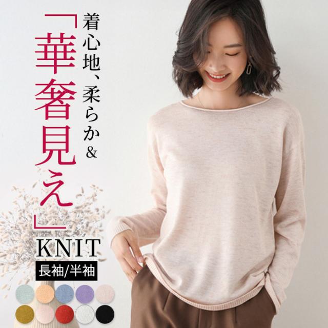 ニット セーター レディース 長袖 半袖 丸首 Vネック トップス きれいめ ボートネック ラウンドネック 無地 ドロップショルダー チュニック 大きいサイズ 薄手 ゆる 体型カバー 春 秋