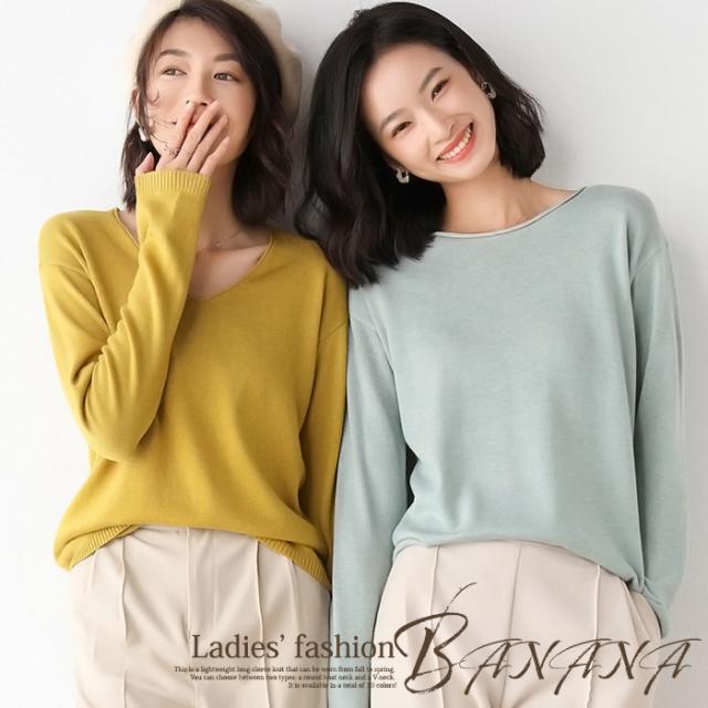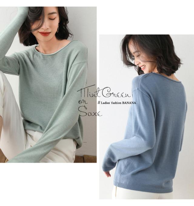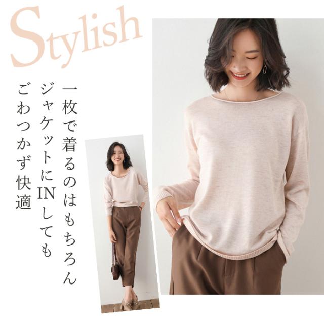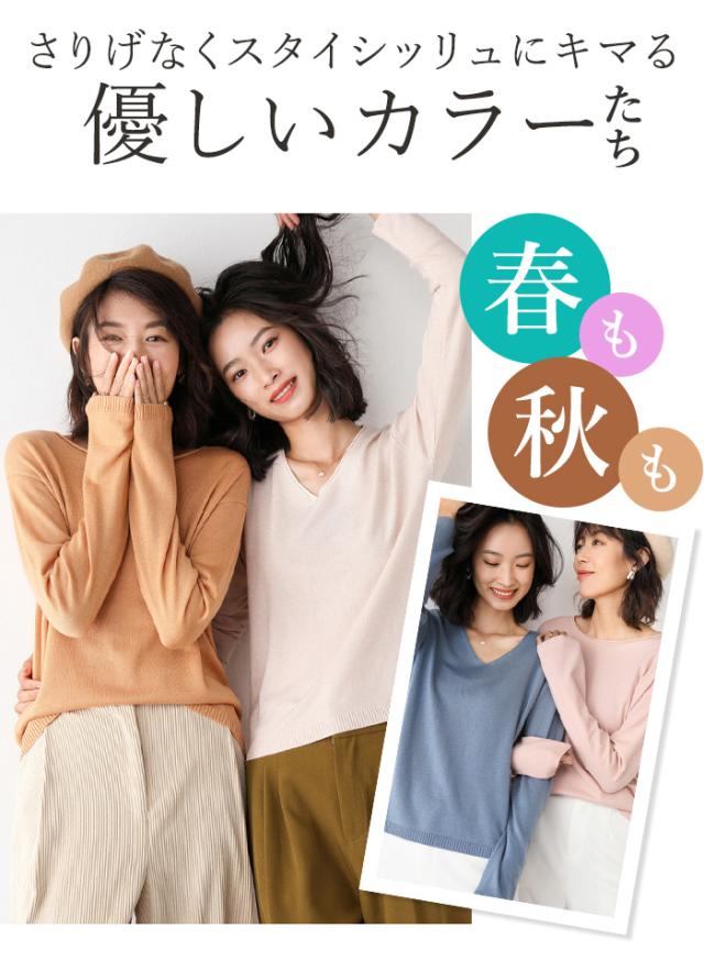 春、秋、冬と着回せる薄手の長袖ニットと