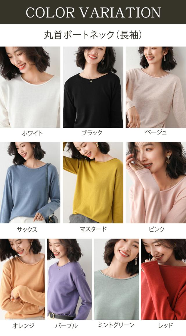 長袖は丸首ボートネックとVネックから