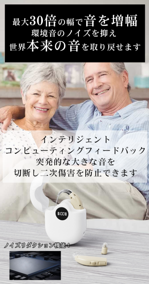【音を30倍増し】最新の伝導技術を搭載、環境音のノイズを抑えながら、最大30倍の幅で音を増幅する。この集音器には物理的なボタンもあり、無段階音量調整でき、自由で元の世界の音を取り戻せよ。