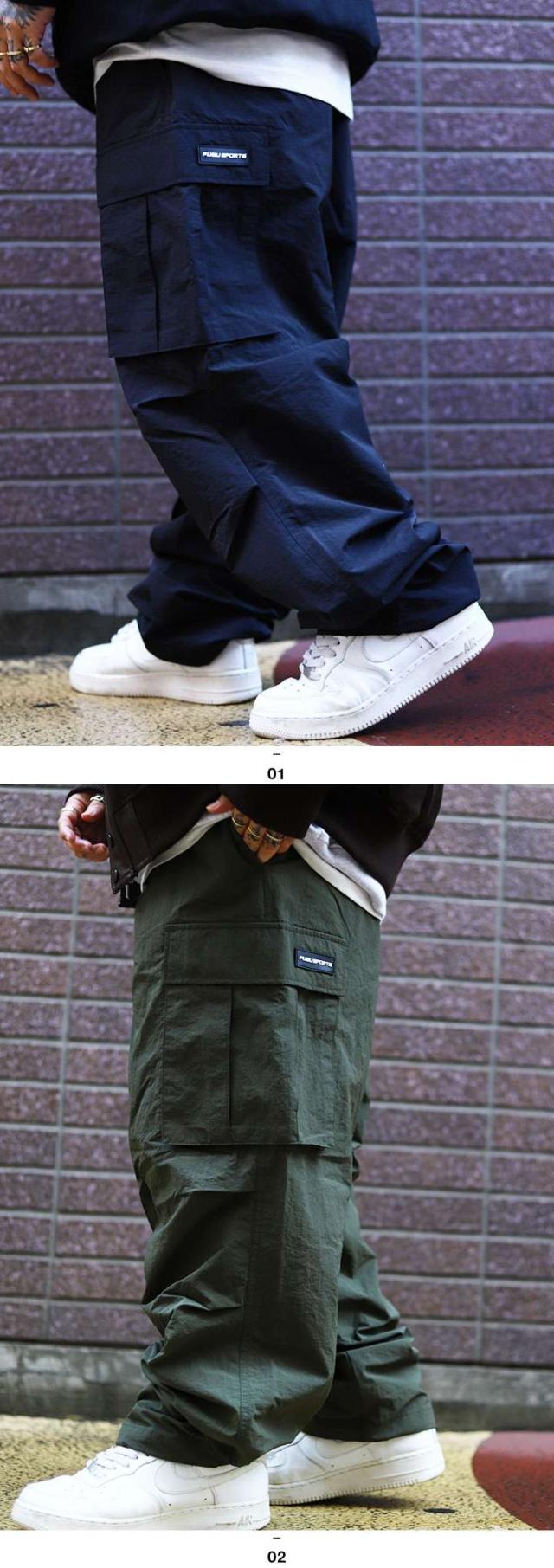FUBU ナイロンパンツ シャカパン ワイドパンツ メンズ 春夏秋冬用 黒 オリーブ 大きいサイズ フブ ロングパンツ バギーパンツ ゆったり 太め 無地 ビッグシルエット b系 ヒップホップ ファッション スポーツ ストリート系 ハイ ブランド 新作 FAM-42502