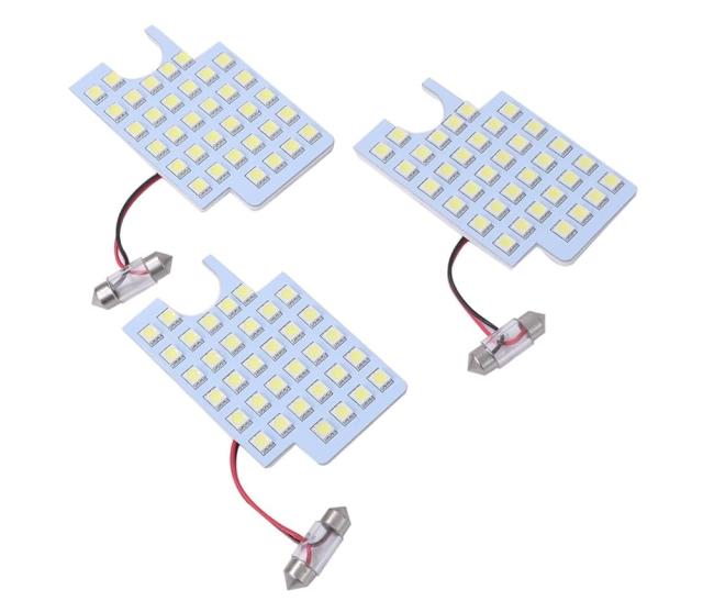 車のドレスアップの中でもルームランプは、簡単にLEDに変更する事ができます。純正ルームランプに合わせ設計された形状で配光バランスが良く、ハロゲンバルブとは比べられない明るさが実感できます。フロント用LEDランプ35連、センター用LEDランプ35連でムラ無く車内を照らしますので明るさが抜群です。