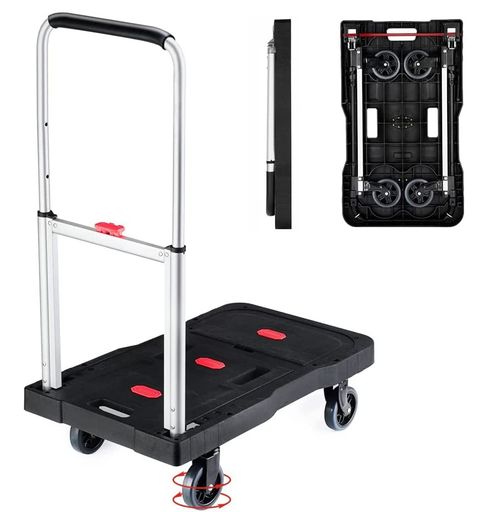 【軽量&頑丈のアルミニウム合金】アルミニウム合金ハンドルと高品質のエンジニアリングプラスチック製ベースプレートでできており、より頑丈で耐久性があります。そして、耐荷重は150kgまでで、大きな荷物も楽に運べます。 荷台は滑り止め付きで、荷物が倒れにくく安全です。