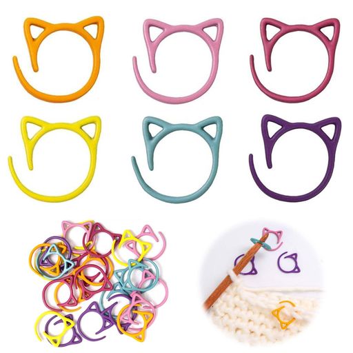 PAVIKE ステッチマーカー(6色24個) 段数マーカー ステッチマーカー かぎ針編 編みのマーカー かわいい 猫耳の形 編み物ツール DIY 工具 携帯に便利 手芸 衣類のDIY縫製用 段数リング カラフル