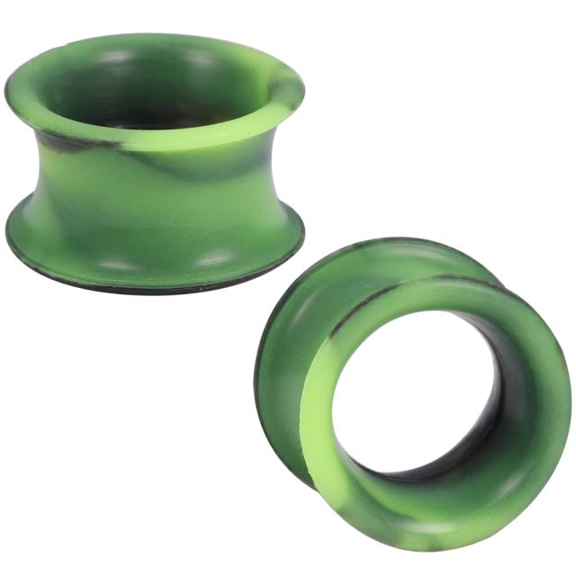 [ 4G 2G 0G 00G 12.0mm] マーブルシリコンフレア(Style19)ボディピアス トンネル ボディピアス4ゲージ 2ゲージ 0ゲージ 00ゲージ 12mm 12ミリ ハーフインチ ソフト ボディーピアス メンズ レディース 金属アレルギー対応 緑色 グリーン 黒色 ブラック