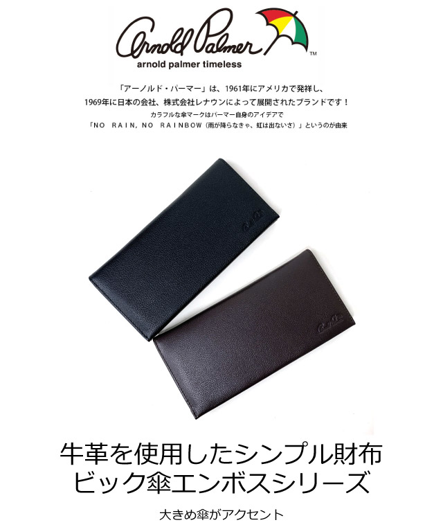 かぶせ長財布 メンズ ARNORD PALMER アーノルドパーマー ビック傘エンボス かぶせ長財布 4ap3610 薄マチ 長サイフ 財布 大容量 ブランド 革 人気 レザー ロングウォレット wallet なが財布 長さいふ 折り財布 プレゼント ギフト クリスマス xmas メンズ財布 黒 茶