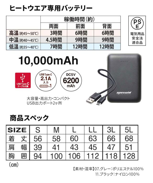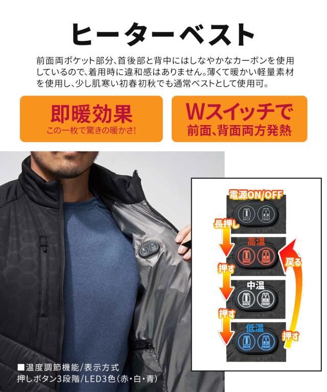 アタックベース 電熱ベスト バッテリー付き 電熱ジャケット ヒーター 電熱ベスト ヒーターベスト 加熱ベスト 電熱ウェア 秋冬 ヒートベスト 防寒着 usb加熱 バッテリーセット ヒーター付きベスト 充実機能 簡単操作 カーボンファイバー ブラック 黒 グレー 50000
