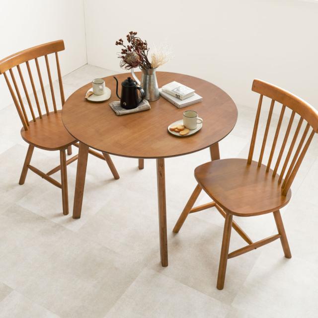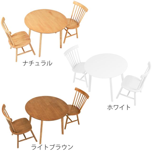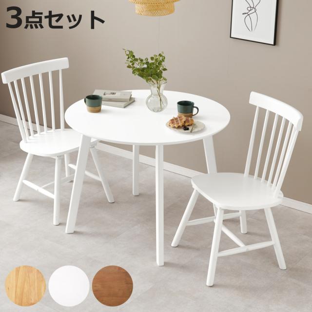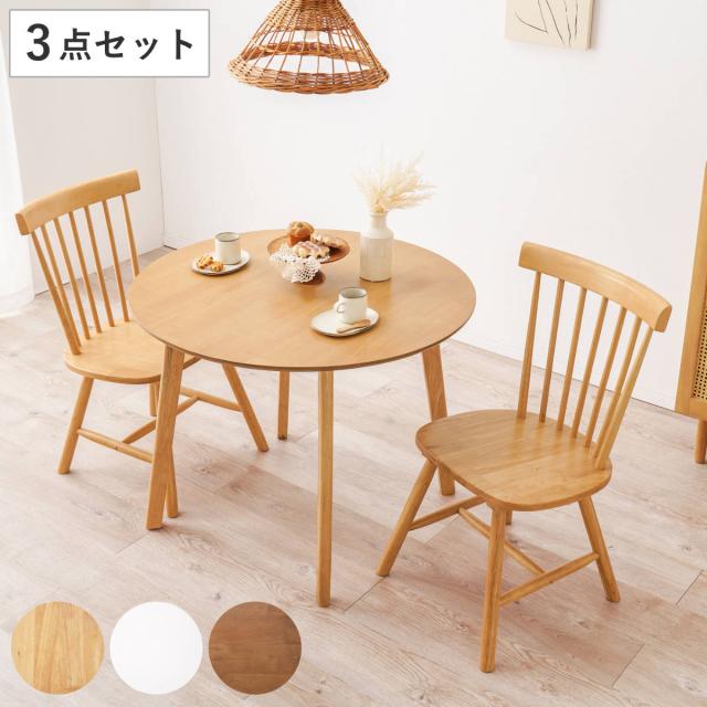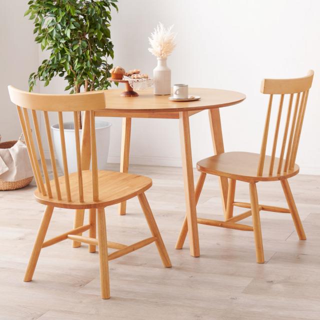 ダイニングテーブルセット 2人掛け 3点セット テーブル直径90cm チェア×2 Bタイプ ( 丸 円形 ダイニングセット ダイニング テーブル チェア 椅子 食卓 セット ウィンザーチェア 木目 天然木 木製 )