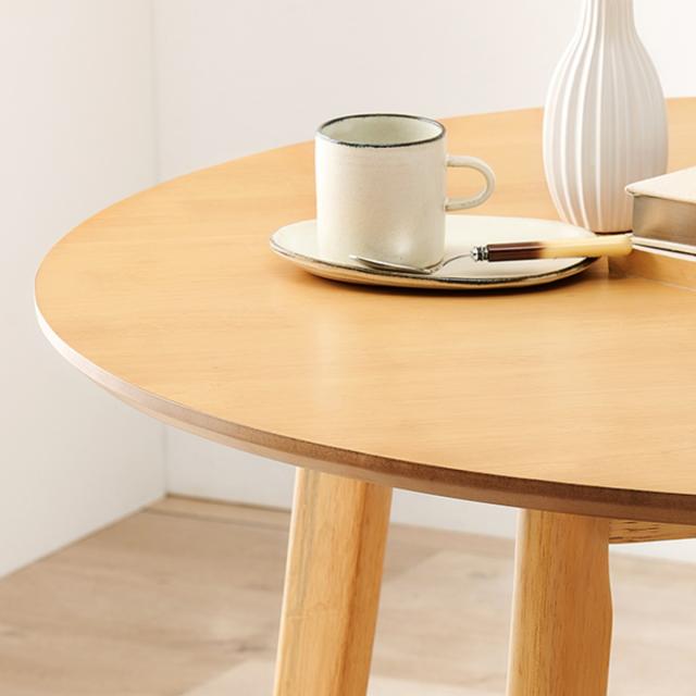 テーブルはコンパクトながら2人分の食事がしっかり置ける直径約90cm。ちょっとしたPC作業も快適にできる広さです。広いスペースの取りづらい2人暮らしの方のお部屋にピッタリです。