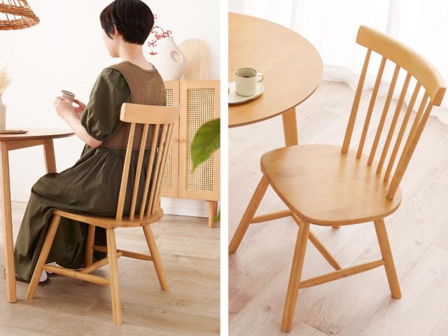 イギリスで生まれた伝統的な椅子「ウィンザーチェア」を使用した、おしゃれで可愛い2人用ダイニングテーブルセットです。シンプルで洗練されたデザインは北欧風、カントリー風、アンティーク調などさまざまなテイストのインテリに合わせやすくなっています。