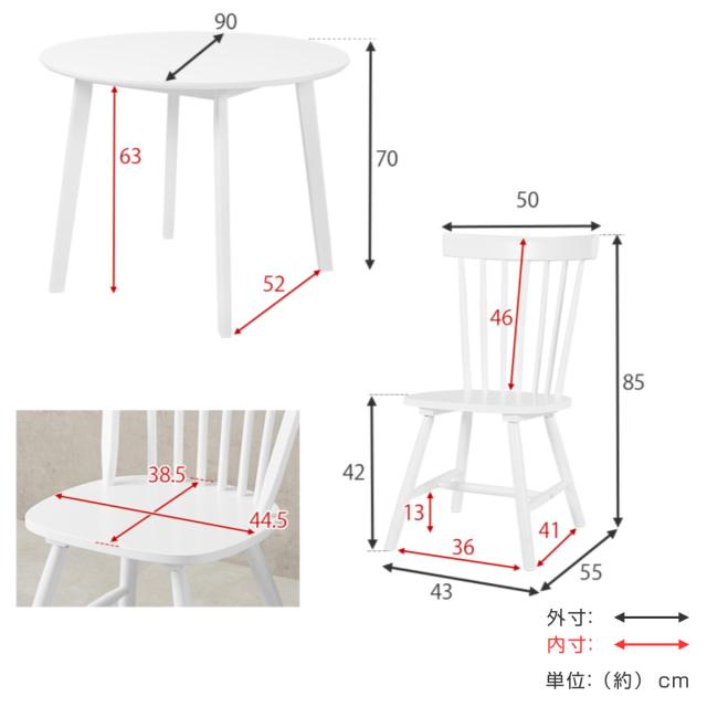 | サイズ | 【テーブル】 約 幅90×奥行90×高さ70(cm) 【チェア】 約 幅50×奥行55×高さ85(cm) 座面高:約 42(cm) |