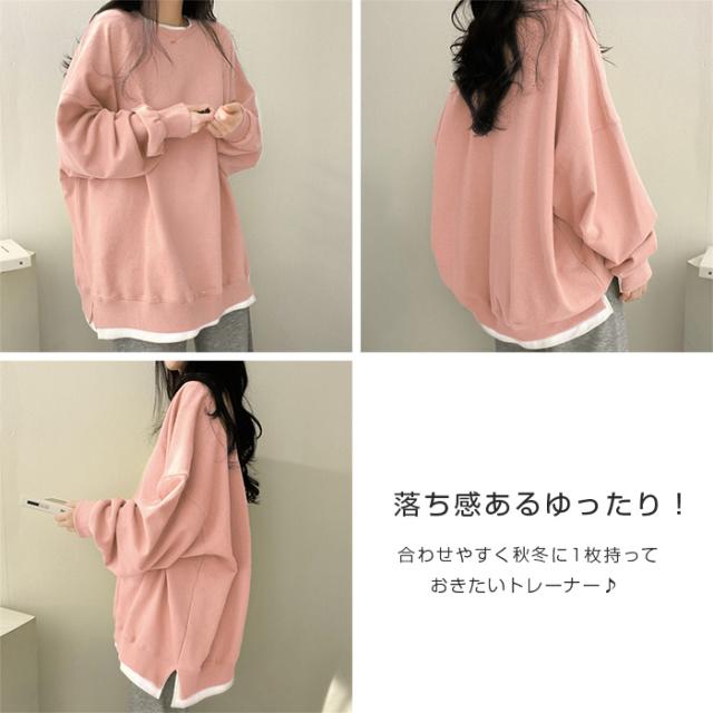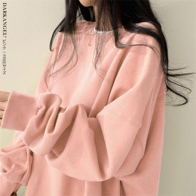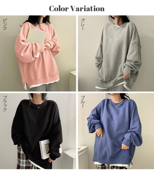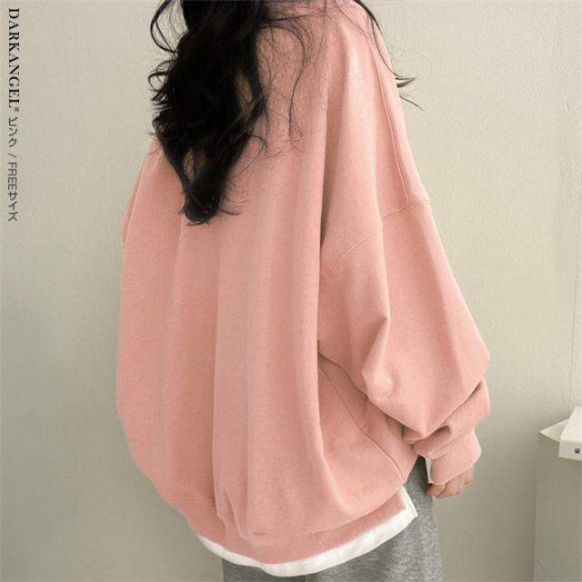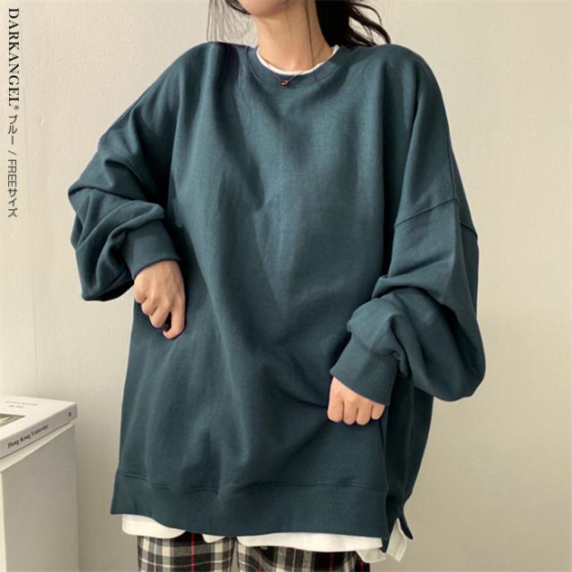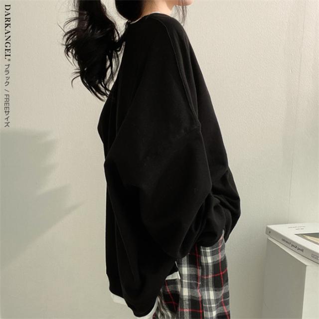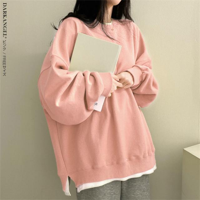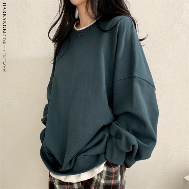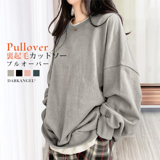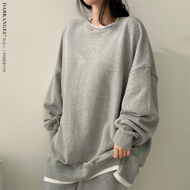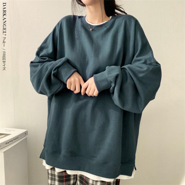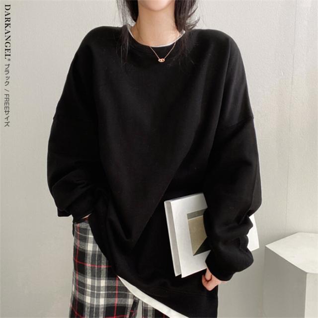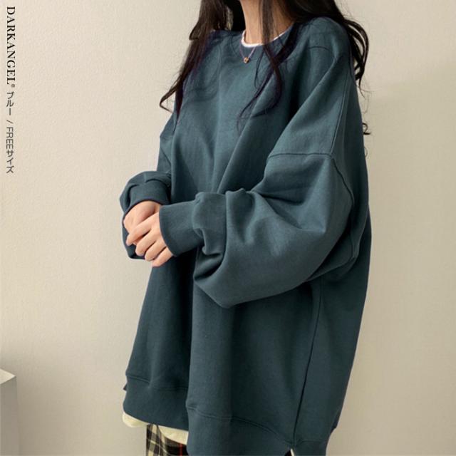 40%OFFクーポン!裏起毛 ボリューム スウェット トップス レディース 長袖 プルオーバー 体型カバー レイヤード風 重ね着風 カジュアル シンプル 防寒 暖か 秋冬 春 秋 冬 【裏起毛カットソープルオーバー】 ダークエンジェル 秋新作 b_bag