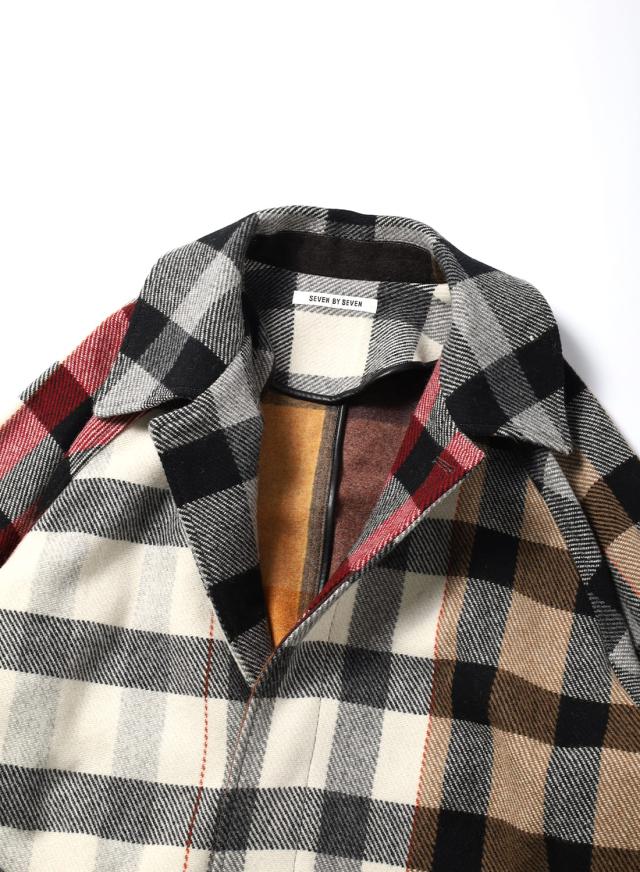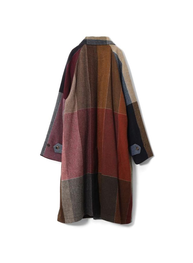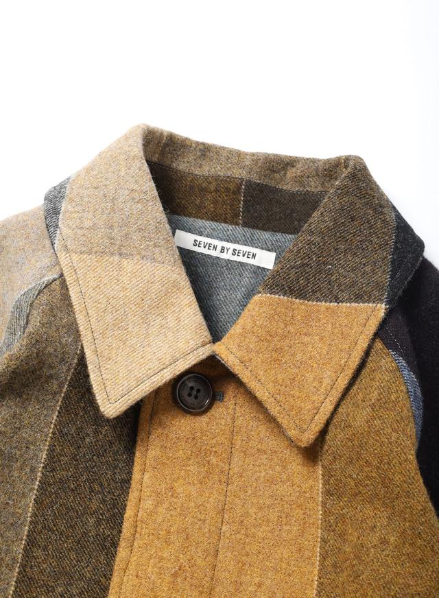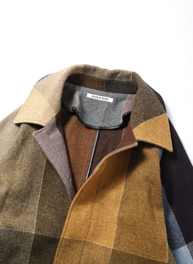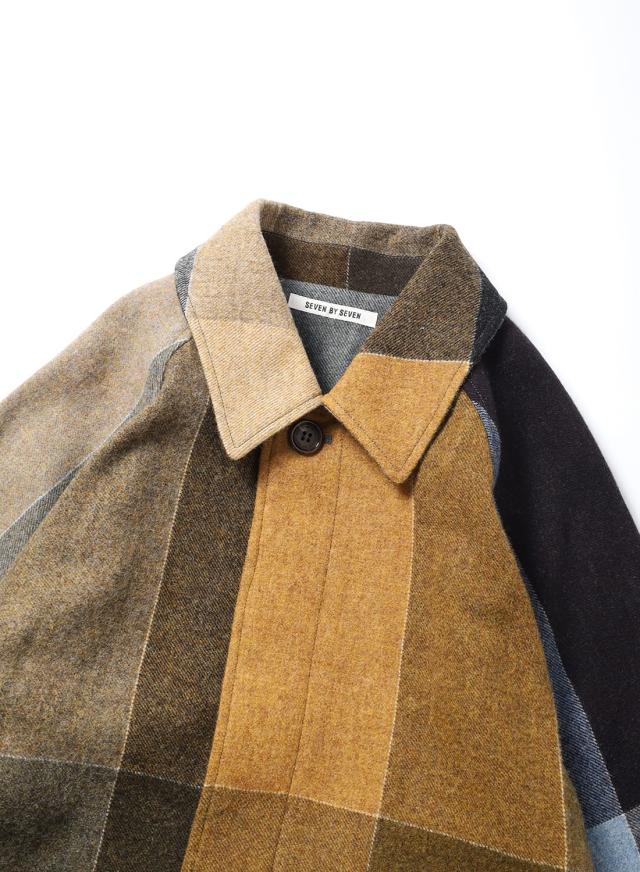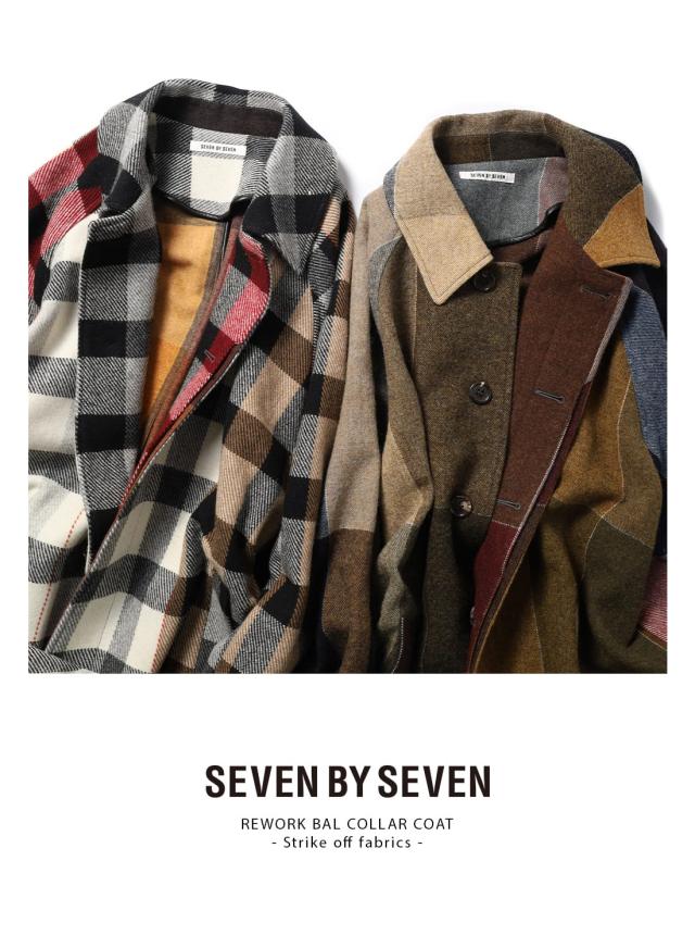 SEVEN BY SEVEN(セブンバイセブン)REWORK BAL COLLAR COAT(リワークバルカラーコート)‐Strike off fabrics‐ ステンカラーコート デッドストック ウール アソート 解体 再構築