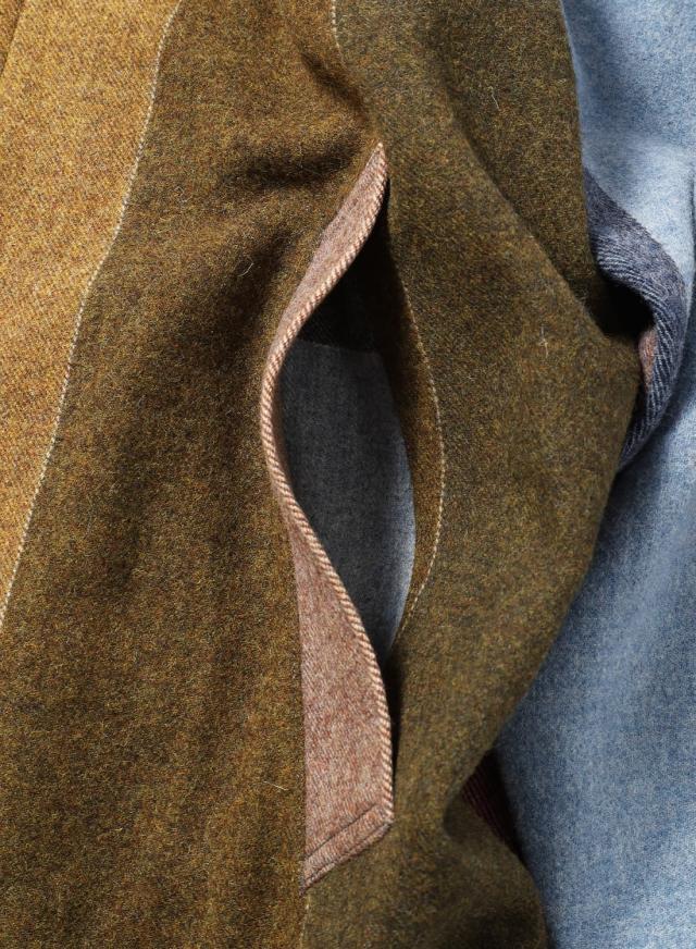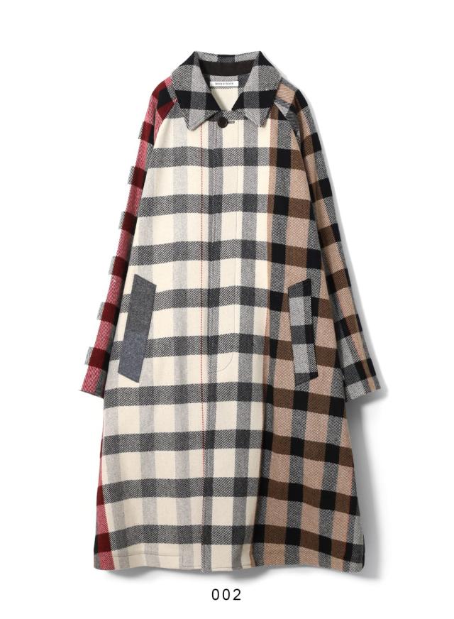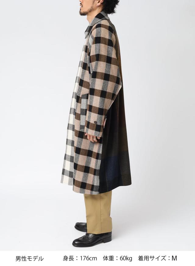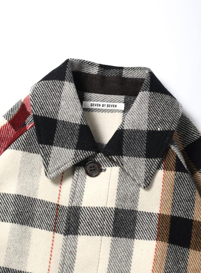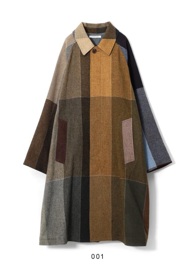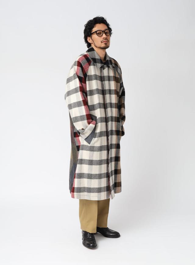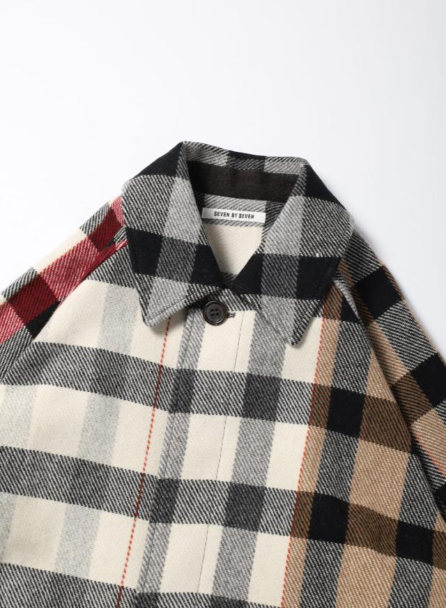 SEVEN BY SEVEN(セブンバイセブン)REWORK BAL COLLAR COAT(リワークバルカラーコート)‐Strike off fabrics‐ ステンカラーコート デッドストック ウール アソート 解体 再構築