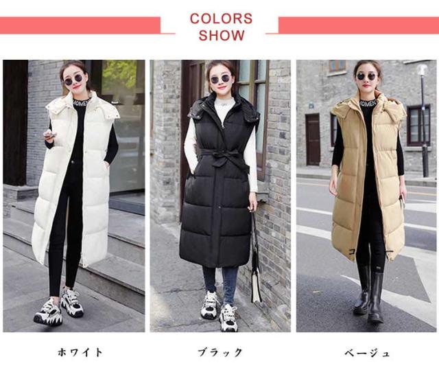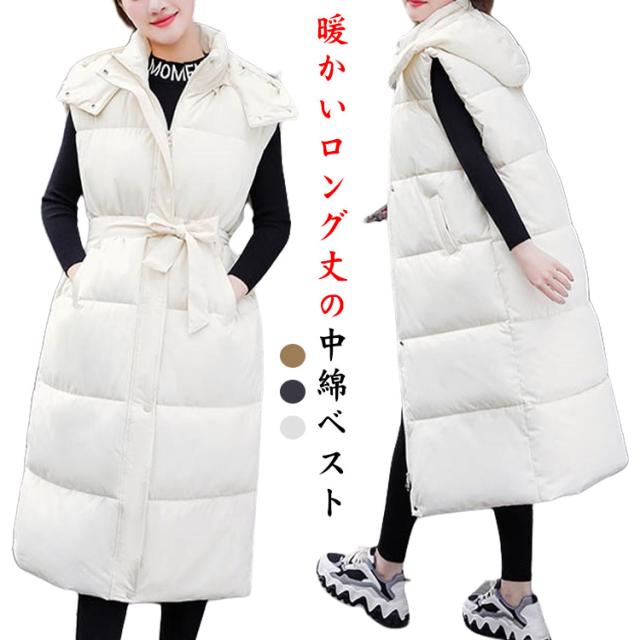 中綿ベスト 大人 前開き 中綿ベスト シンプル 中綿 ジャケット 冬 暖かい ロング丈 フード付き ブルゾン あったか 防寒着 おしゃれ あったか 体型カバー 無地 レディース カジュアル トップス 女性 通勤 秋冬 春 OL 羽織 ギフト プレゼント