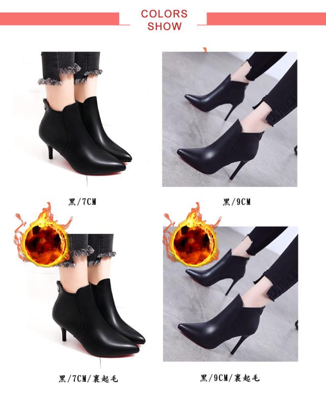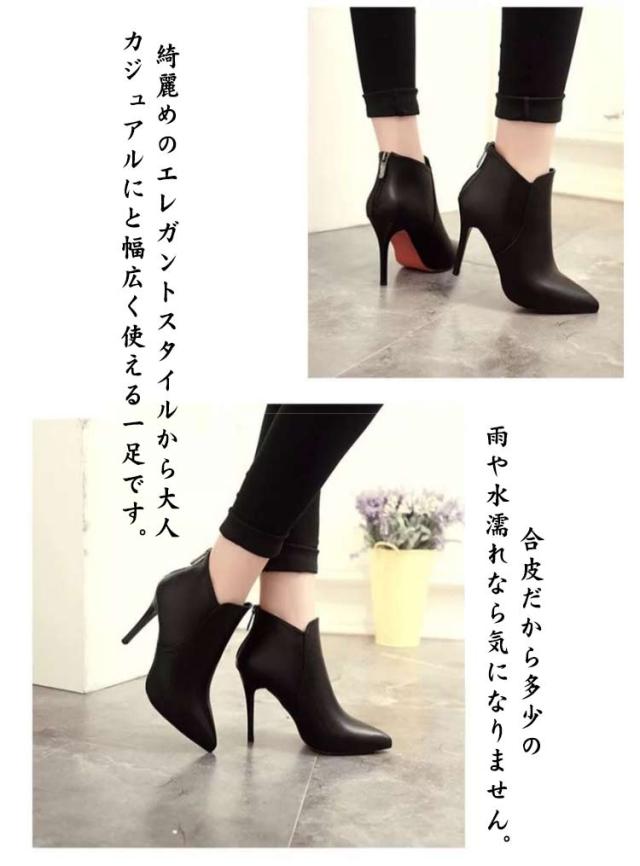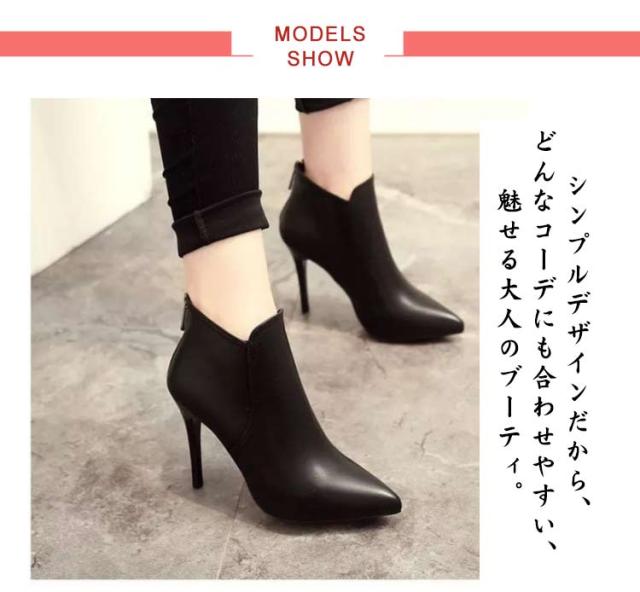 ピンヒール ショートブーツ 9cm レディース 通勤 ハイヒール ポインテッドトゥ 冬 ブーティ 秋冬 ハイヒール ブラック 美脚 春 裏起毛 痛くない ファスナー付き 美脚 歩きやすい 靴 大人女性 バックジッパー OL 秋 ショートブーツ 防寒 黒 ファッション