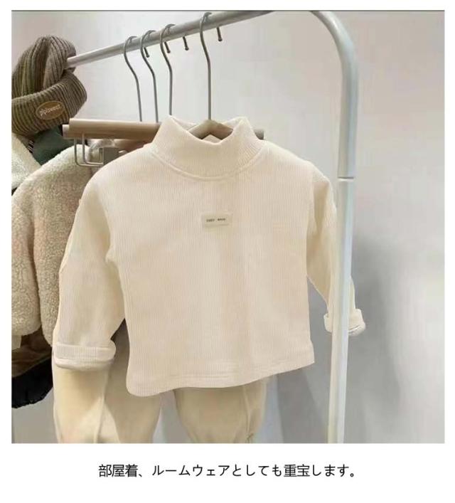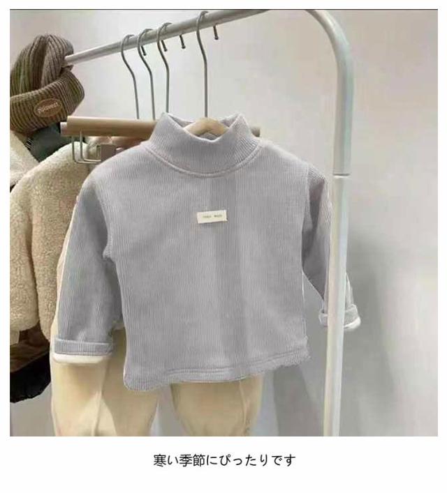 送料無料 キッズ 裏起毛 トップス 長袖 Tシャツ 厚手 ハイネック ボトルネック 裏ボア 子供服 ベビー服 無地 カットソー ロンT シンプル あったか 男の子 女の子 ユニセックス 秋冬服 リブ編み タートルネック 80 90 100 110 120 130 140cm