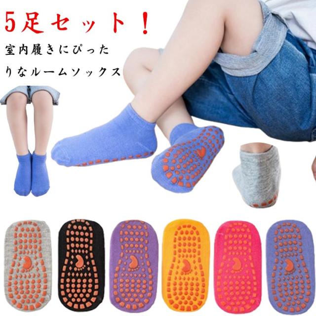 くつした ルームソックス 男の子 こども 靴下 ベビー 女の子 ソックス 5足セット くつ下 ルームシューズ 無地 就寝 室内履き キッズ 靴下 冷え対策 子供 室内 部屋用 滑り止め ソックス 自宅 そっくす 靴下 シンプル 歩きやすい