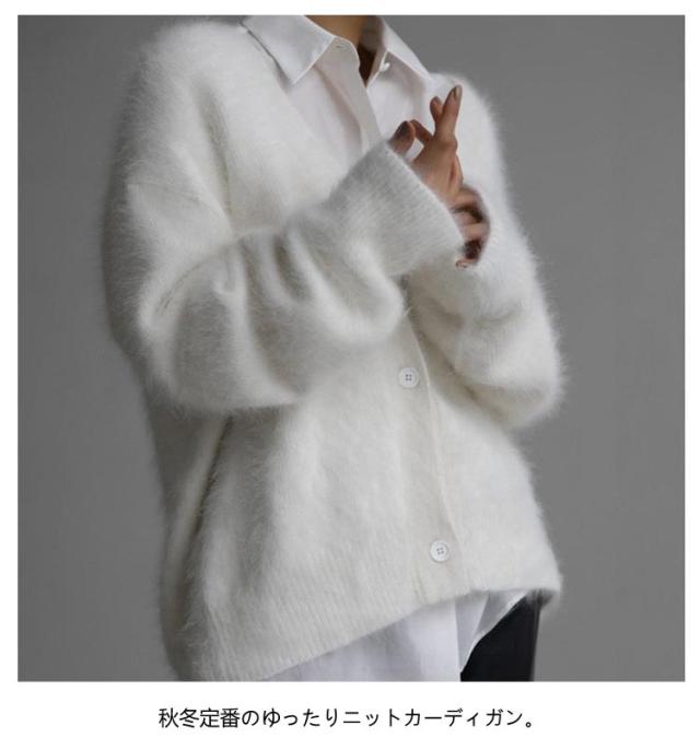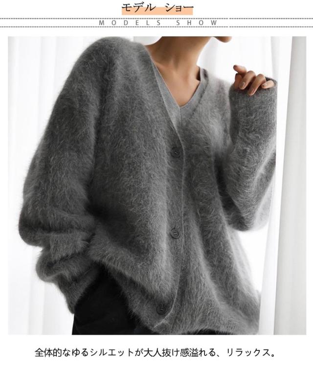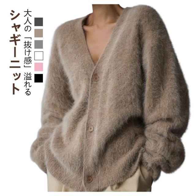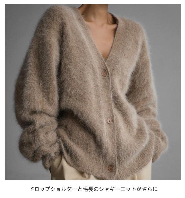 ニットカーディガン 秋 ニット カーディガン シャギーニット ゆったり レディース トップス ニットカーディガン 毛足長い Vネック 起毛ニット シャギーカーディガン 大きいサイズ ボタン ドロップショルダー 羽織り 冬 暖かい もこもこ 無地