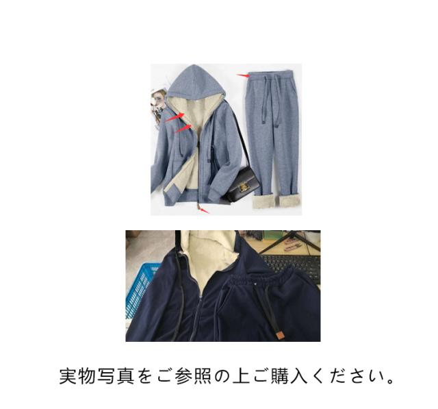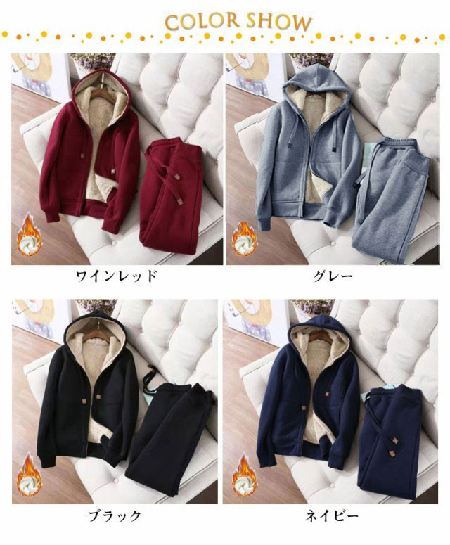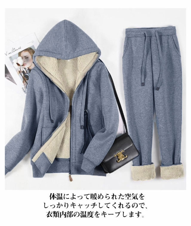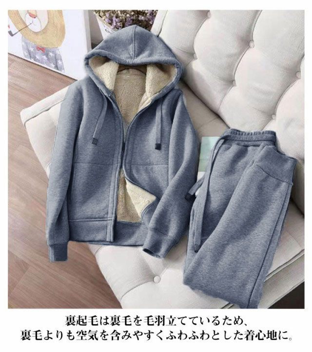 スウエット 上下 2点セット 裏起毛 パーカー ジップアップ 長袖 トップス フード付き スウエットパンツ レディース 秋 冬 裏ボア セットアップ ジャージ スエット ルームウェア 部屋着 厚手 あったか 保温 防寒 ゆったり 無地 シンプル 外出 カジュアル 【送無】