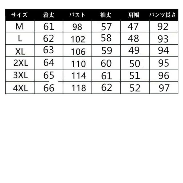 | サイズについての説明 | M L XL 2XL 3XL 4XL |