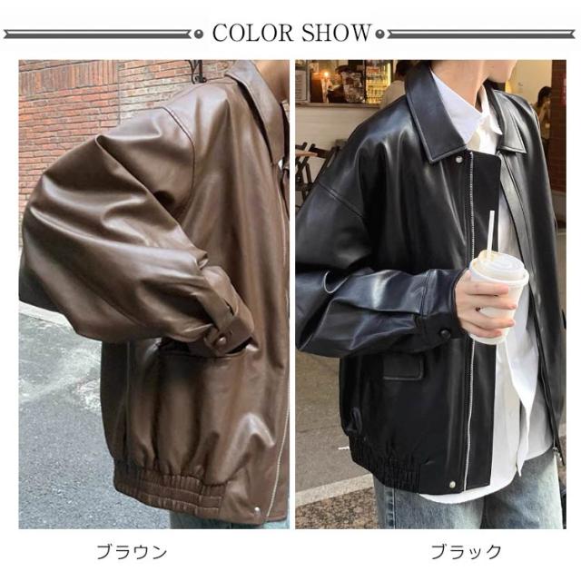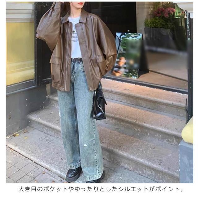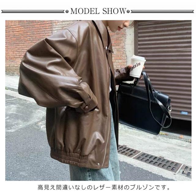 レザージャケット ライダースジャケット 革ジャン フェイクレザージャケット オーバーサイズ ブルゾン ゆったり アウター レディース ドロップショルダー シンプル 大人 おしゃれ カジュアル 無地 秋 冬 秋冬