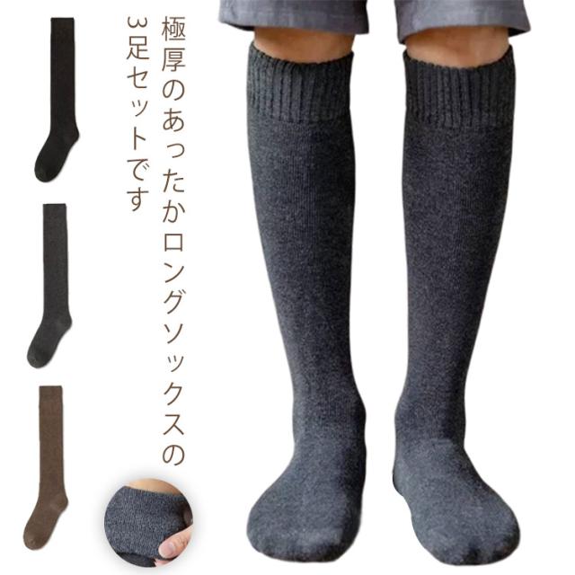 靴下 ハイソックス メンズ 暖かい あったか 防寒対策 3足組 紳士用 厚手 男性 ビジネス ソックス 冷え取り 秋冬 極暖 保温 足冷え対策 裏起毛 通勤 通学 アウトドア 登山 キャンプ 送料無料