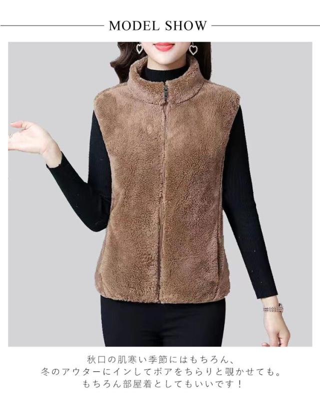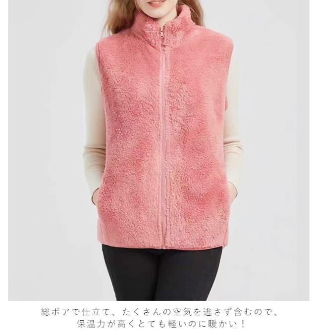ボアベスト レディース フリース ベスト ジレ もこもこ 秋冬 前開き アウター フリースベスト ノースリーブ 袖なし 厚手 スタンドカラー 立ち襟 ルームウェア 部屋着 防寒着 アウトドア 大きいサイズ 重ね着 送料無料