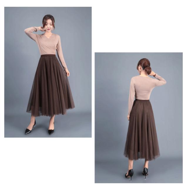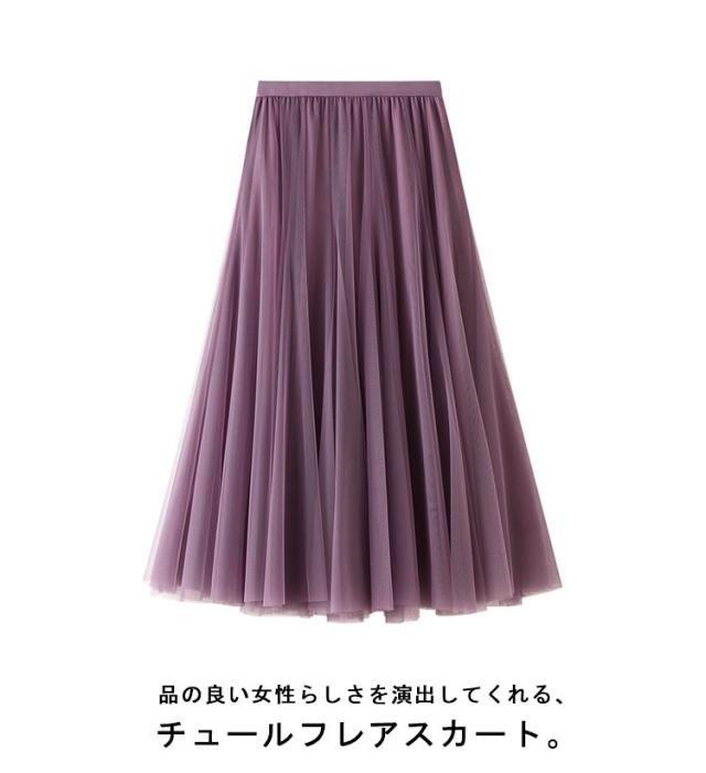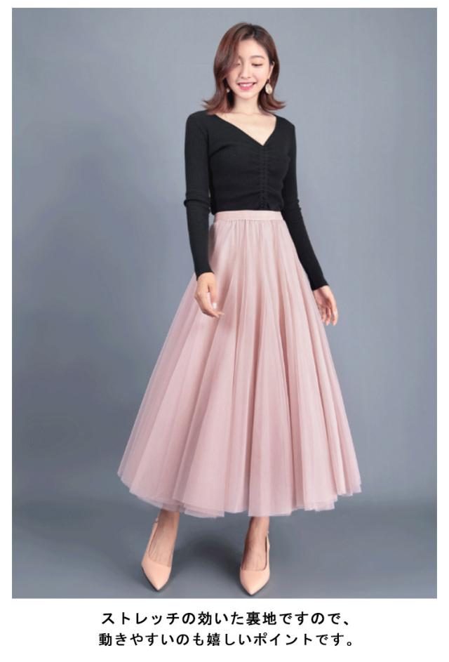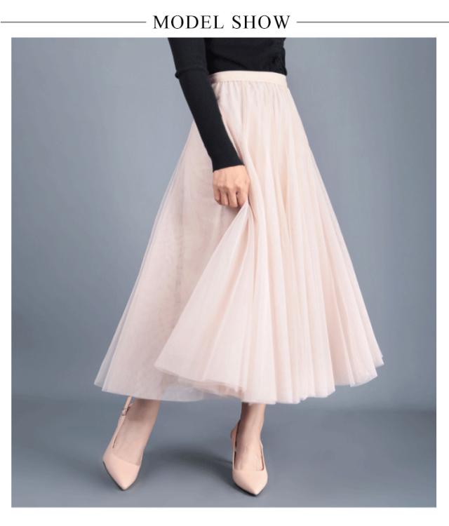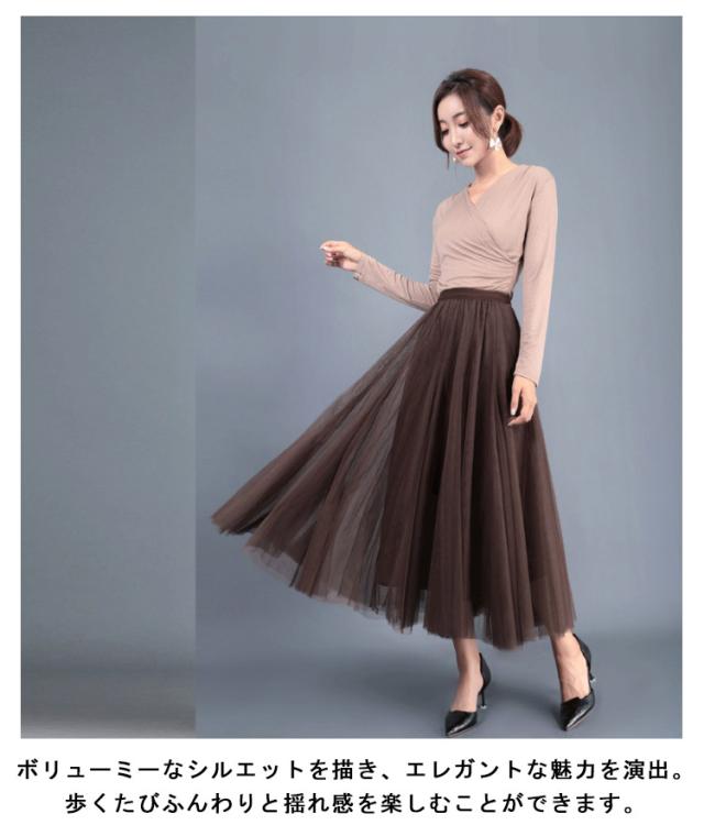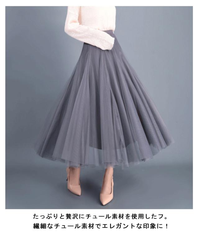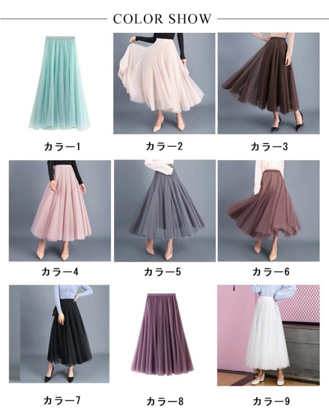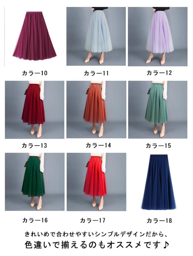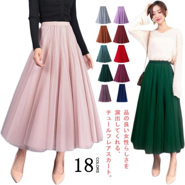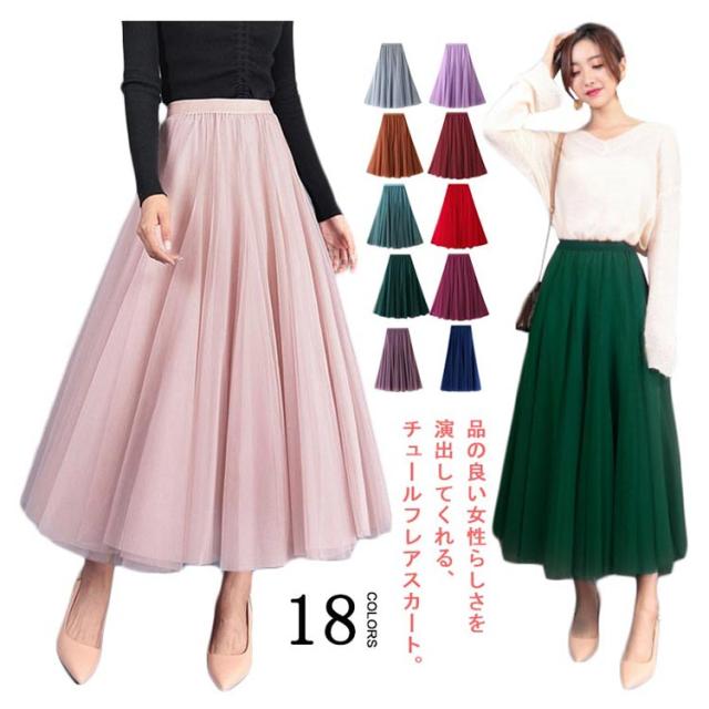 レディース チュールスカート チュール ボリューム ロング丈 ロングスカート フレアスカート ダンス チュチュスカート エレガント スカート ウエストゴム 着痩せ パステル カラフル全18色展開 通勤 通学 デート お出かけ