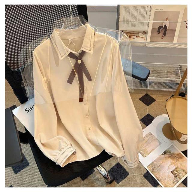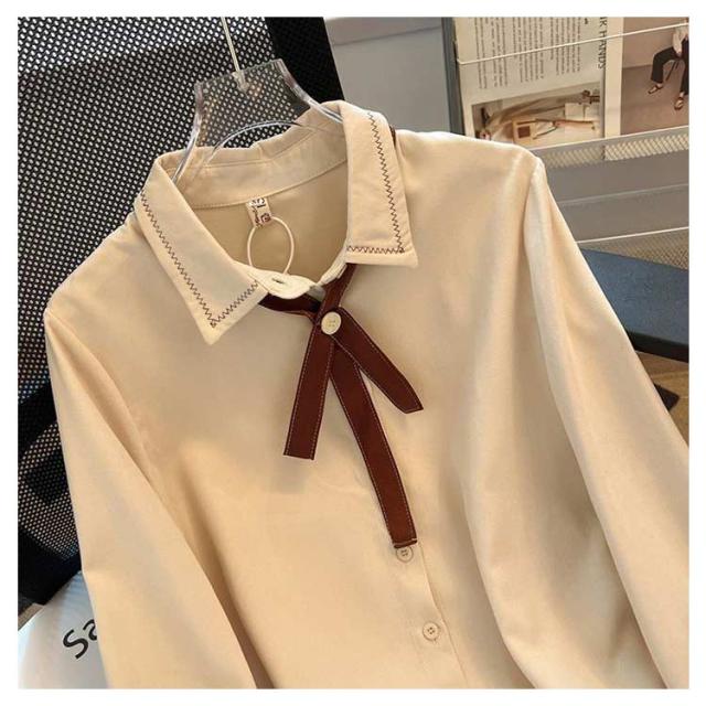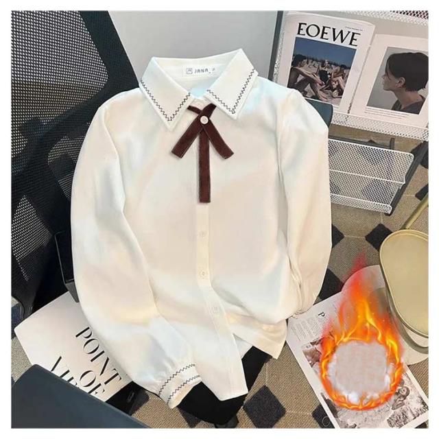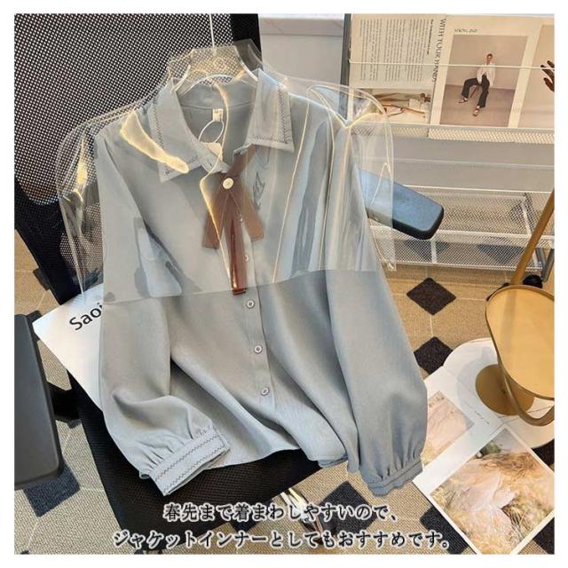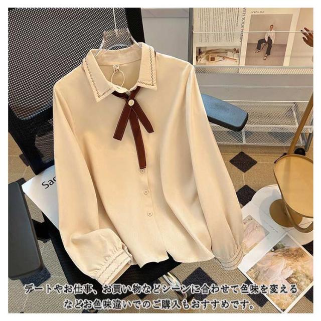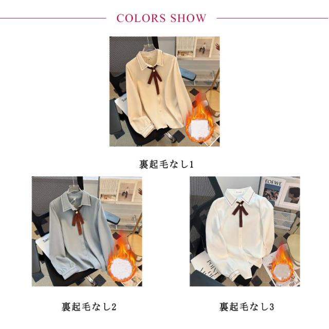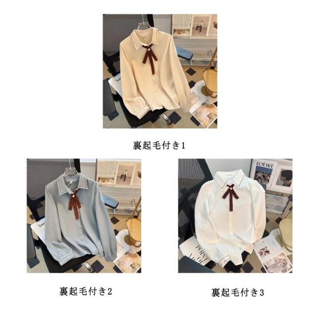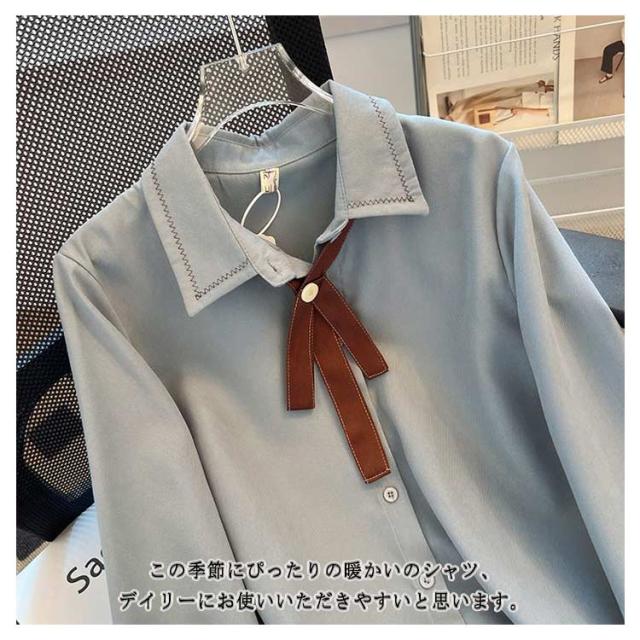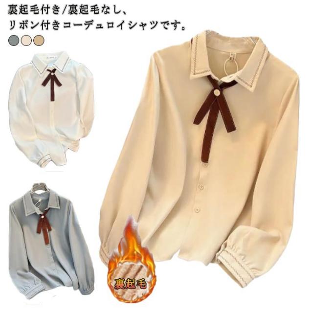 リボン付き ブラウス 体型カバー 春 リボン付き 秋 冬 長袖 コーデュロイシャツ 上品 大きいサイズ きれいめ シャツ カジュアル 裏起毛付き/裏起毛なし S 通勤 オフィス シンプル 大人 レディース M L XL 2XL