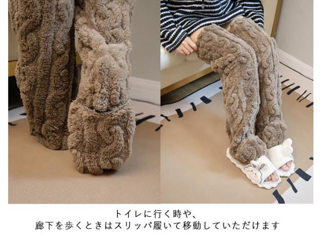 | 寝冷え知らずの極上あったかレッグウォーマーです。 ロングタイプで足全体が暖かく、毛足の長いふわふわした生地なのでまるで毛布をまとったような暖かさです。 履き口は、弾力性がちょうどよく、寒風が入りにくく、通常の靴下よりも耐久性があります。 脱がずに足先が出せるので、熱がこもっていると思えば温度調節が可能。 締めつけすぎない設計で男性もゆったり履いていただけます。 トイレに行く時や、廊下を歩くときはスリッパ履いて移動していただけます。 | |